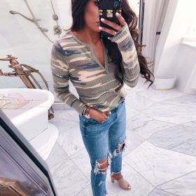 Autumn Hot Tops Sexy V-neck Cardigan Buttons Camouflage Tops (Color: Camouflage, size: S)