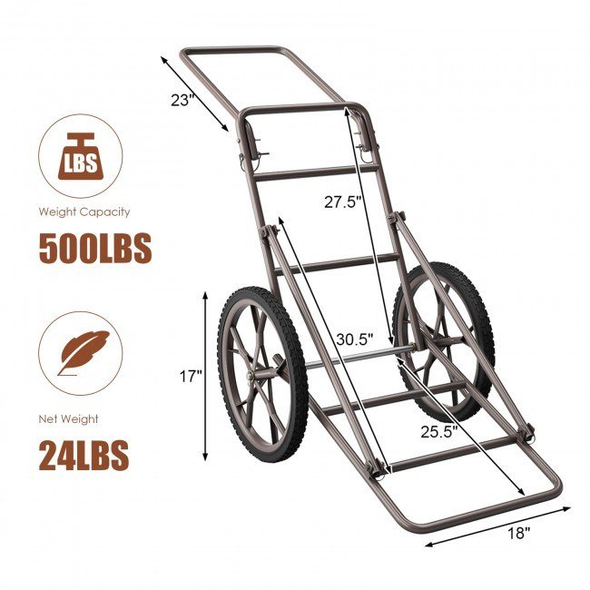 1.Sturdy Steel Construction: This deer game cart is constructed of heavy-duty steel tubes in smooth powder-coated finish, which provides a strong bearing capacity and can be used for a long time. 500 LBS Weight capacity makes this hunting cart perfect for hauling heavy games, bait, gear.