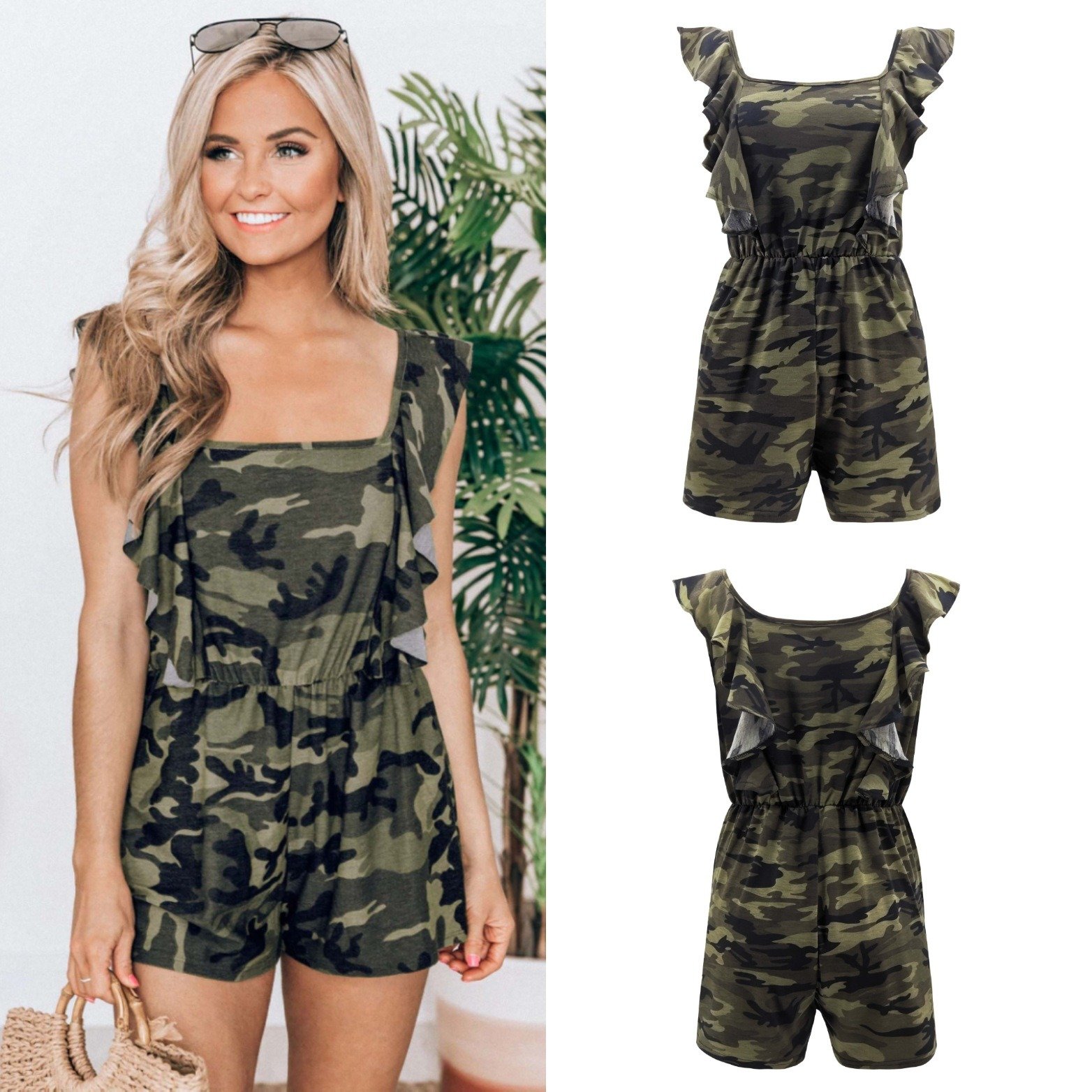 Home > Summer New Women's Camouflage Ruffled Jumpsuit Shorts