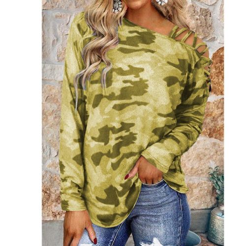 Home > autumn and winter new women's tops off-shoulder camouflage print loose long-sleeved t-shirt