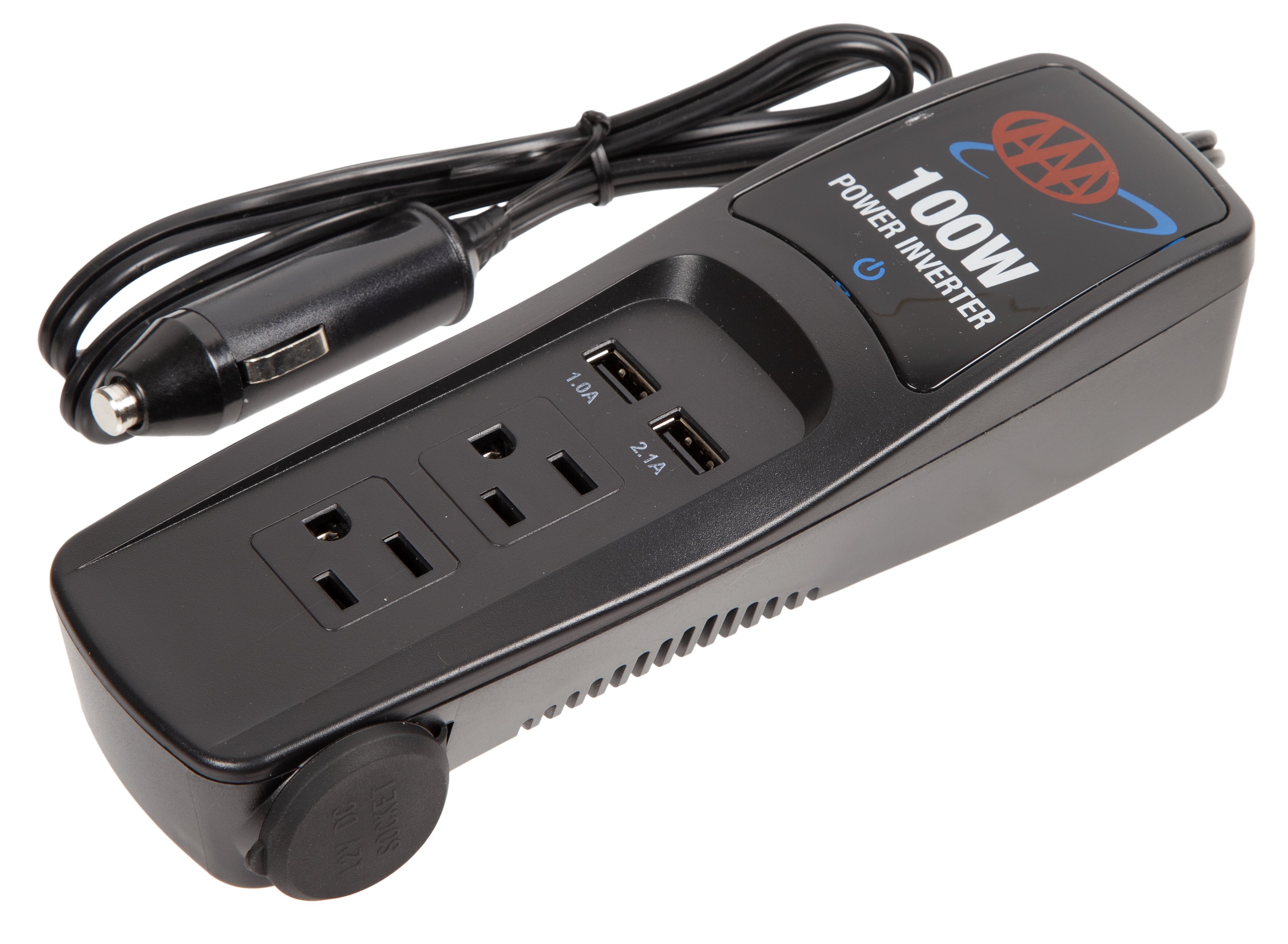 As the exclusive licensee of the AAA brand for roadside emergency safety kits, first aid kits and auto safety accessories, you know that you are getting only the finest products. AAA, one of the most recognizable and trusted names in the automotive industry, has been around for more than 100 years and is dedicated to helping travelers with roadside assistance, travel services and more. All of the components within our AAA line of auto emergency safety kits and accessories must meet minimum standards set forth by AAA engineering department, and before going to market undergo strict testing requirements to ensure the safety of the product, as well as the ability to live up to its promises. We have created a wide range of road kits, first aid kits, and auto safety accessories, to help meet the safety and preparedness needs of travelers across a wide range of price points. The 4361AAA 100 watt power inverter comes backed by the best known name in the automotive industry, AAA.  Unlike off the shelf power inverters, you know you are getting only the finest with AAA. This power inverter converts vehicle power to household power and supplies 100 watts of continuous with up to 200 surge capacity. Includes 2 AC, 2 USB and1 DC outlets to charge items such as cell phones, tablets, gaming systems, fans, mini refrigerators and more. Keep this compact power inverter in your car for access to charging on the go. The compact size makes it perfect to throw in your glove box or auto emergency kit. This accessory is ideal to have in case disaster strikes and you need to charge a phone, laptop, tablet or personal device. The 3 foot long cord makes sure you can reach your devices just about anywhere in your vehicle